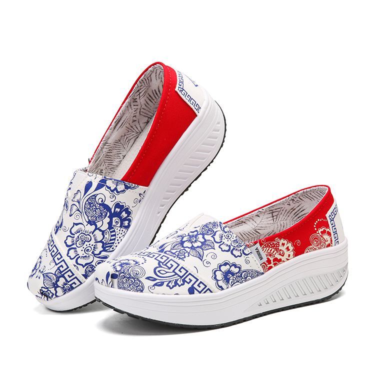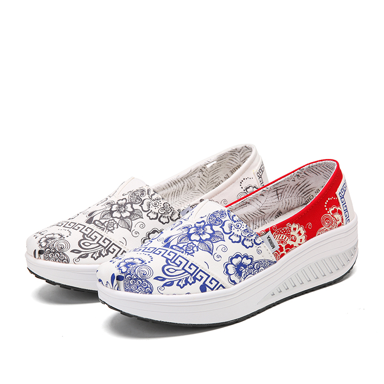 Women Casual Flowers Printed Pattern Comfortable Rocker Sole Walking Shoes