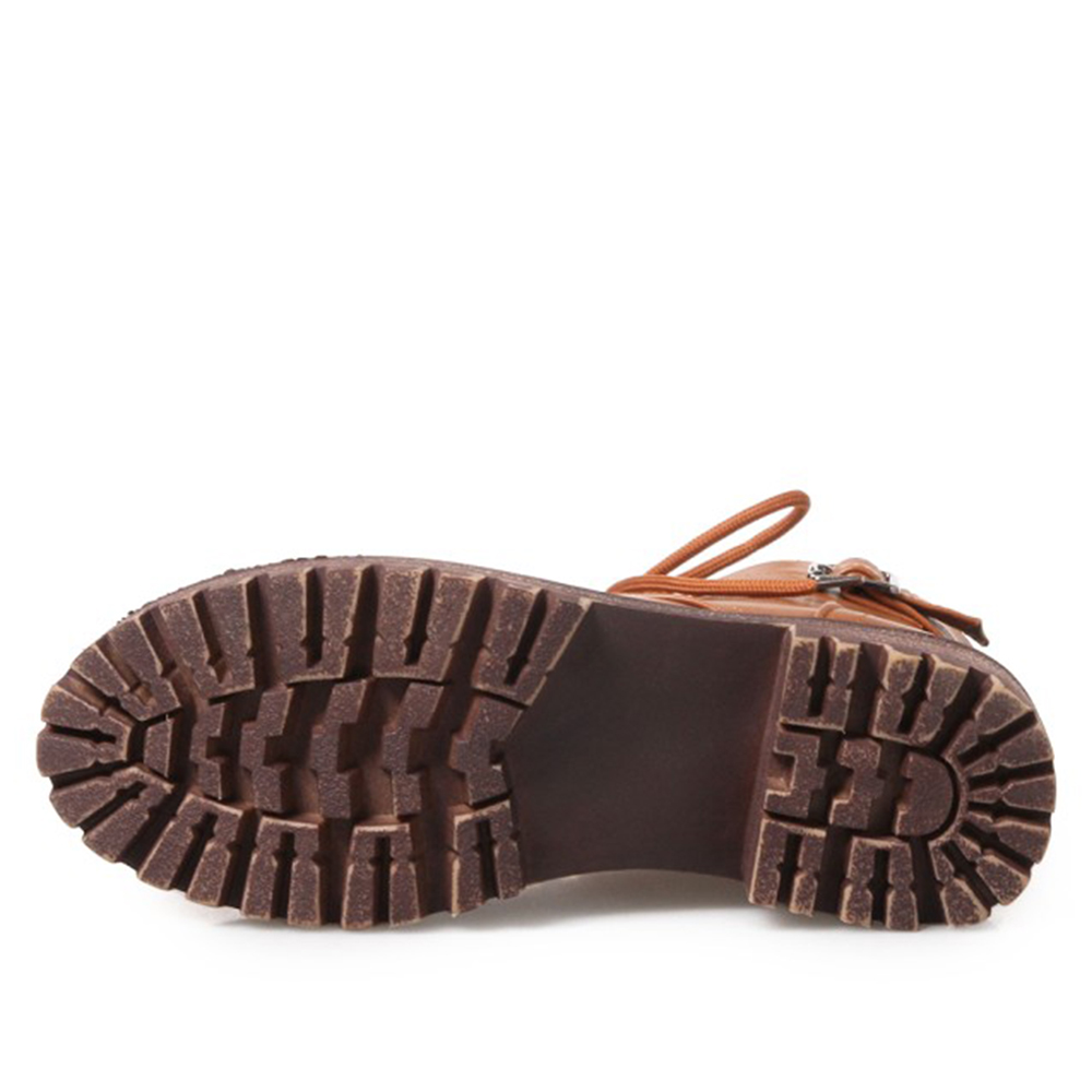 Women Casual Solid Color Buckle Lace Up Platform Short Combat Boots