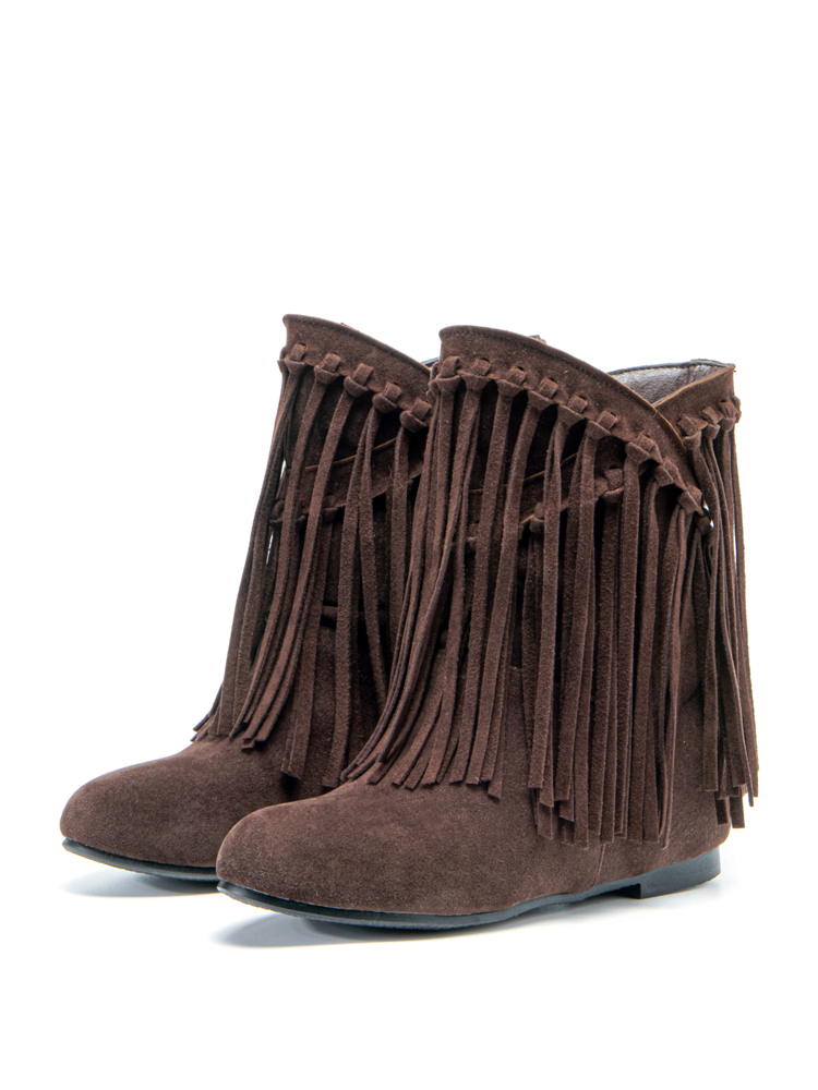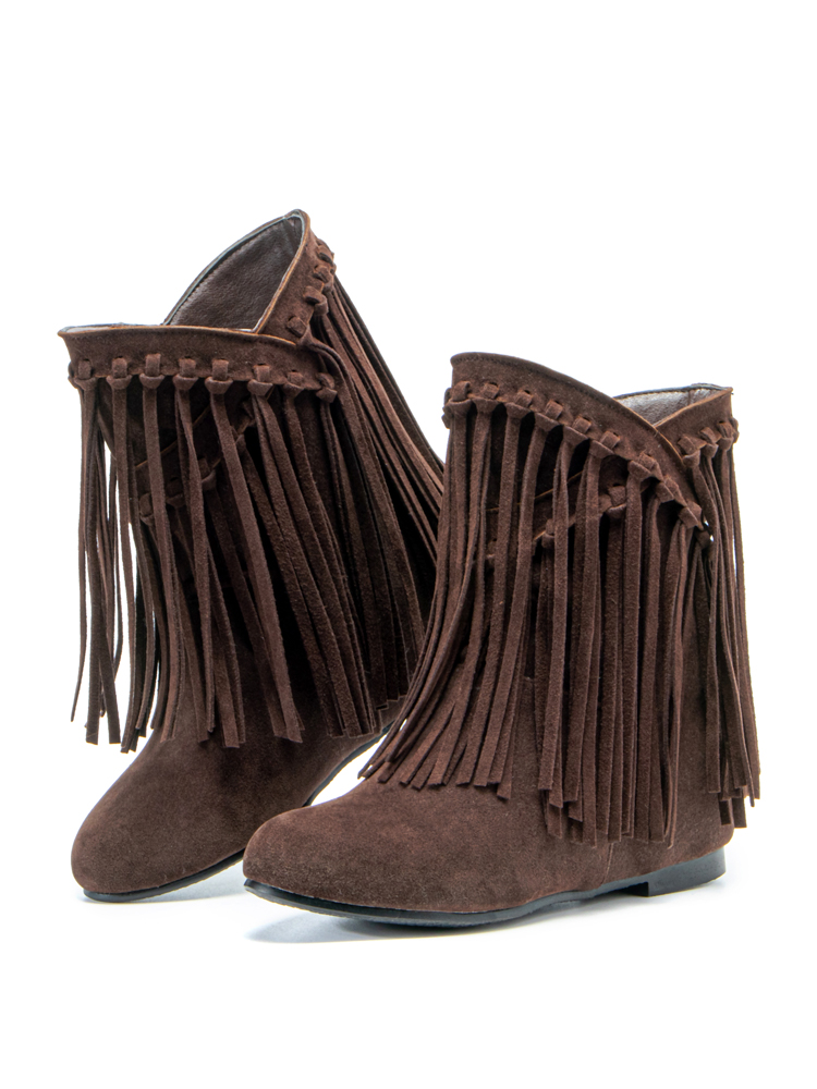 Plus Size Women Casual Suede Tassel Increased Heel Short Boots