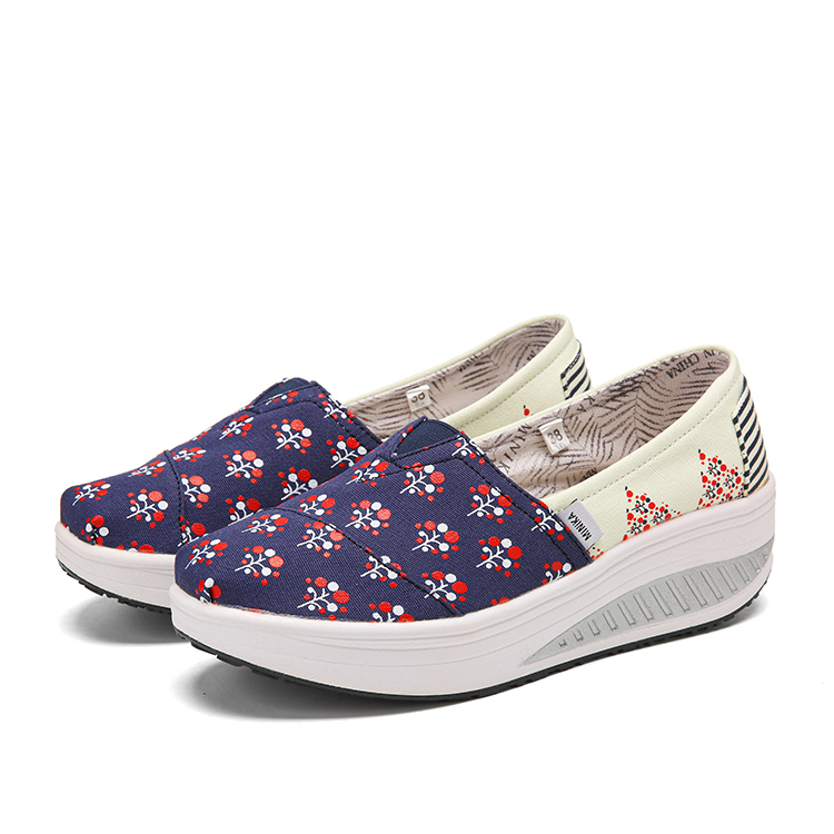 Dots Tree Printed Pattern Comfortable Canvas Rocker Sole Walking Shoes For Women