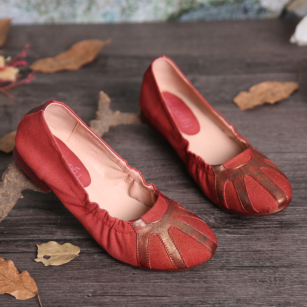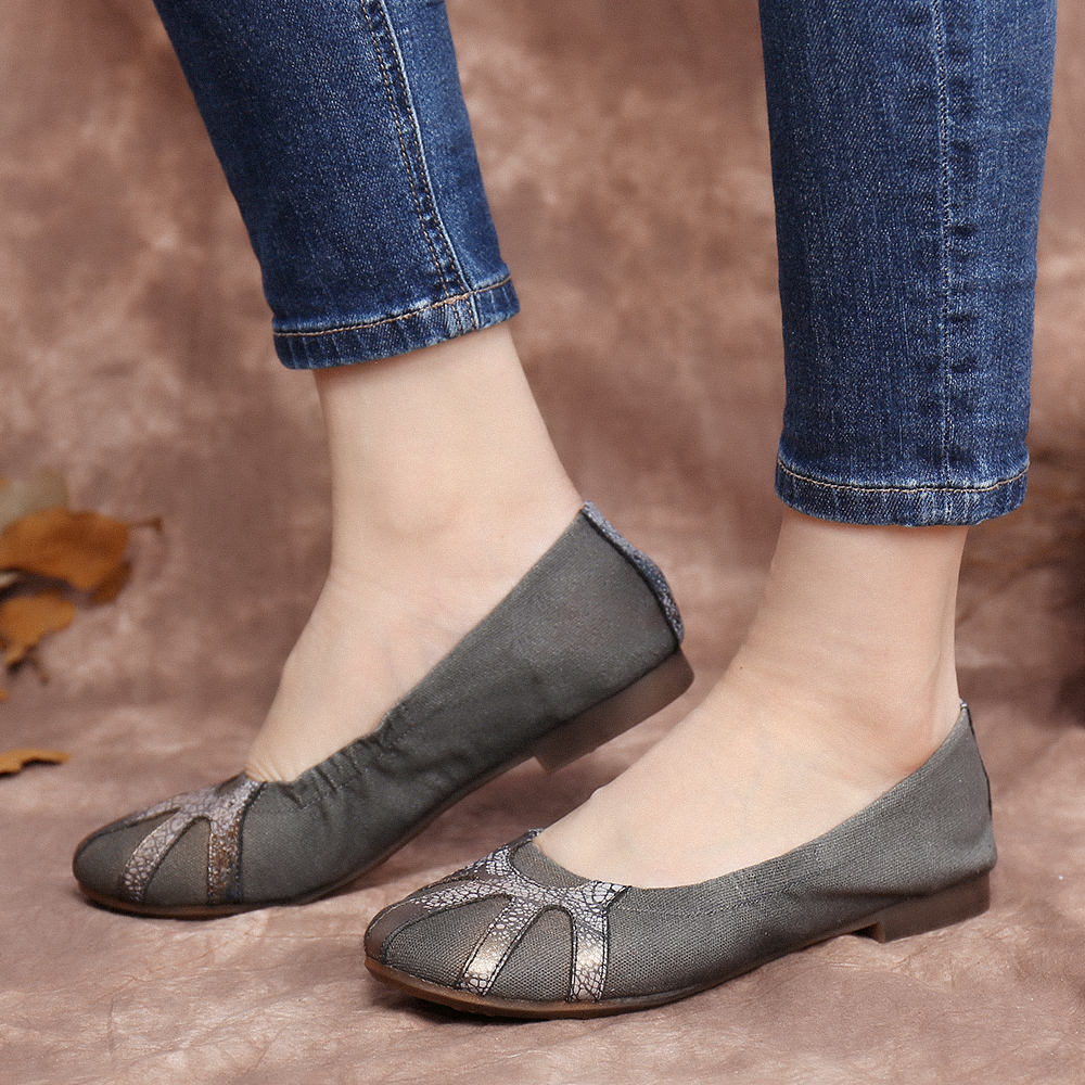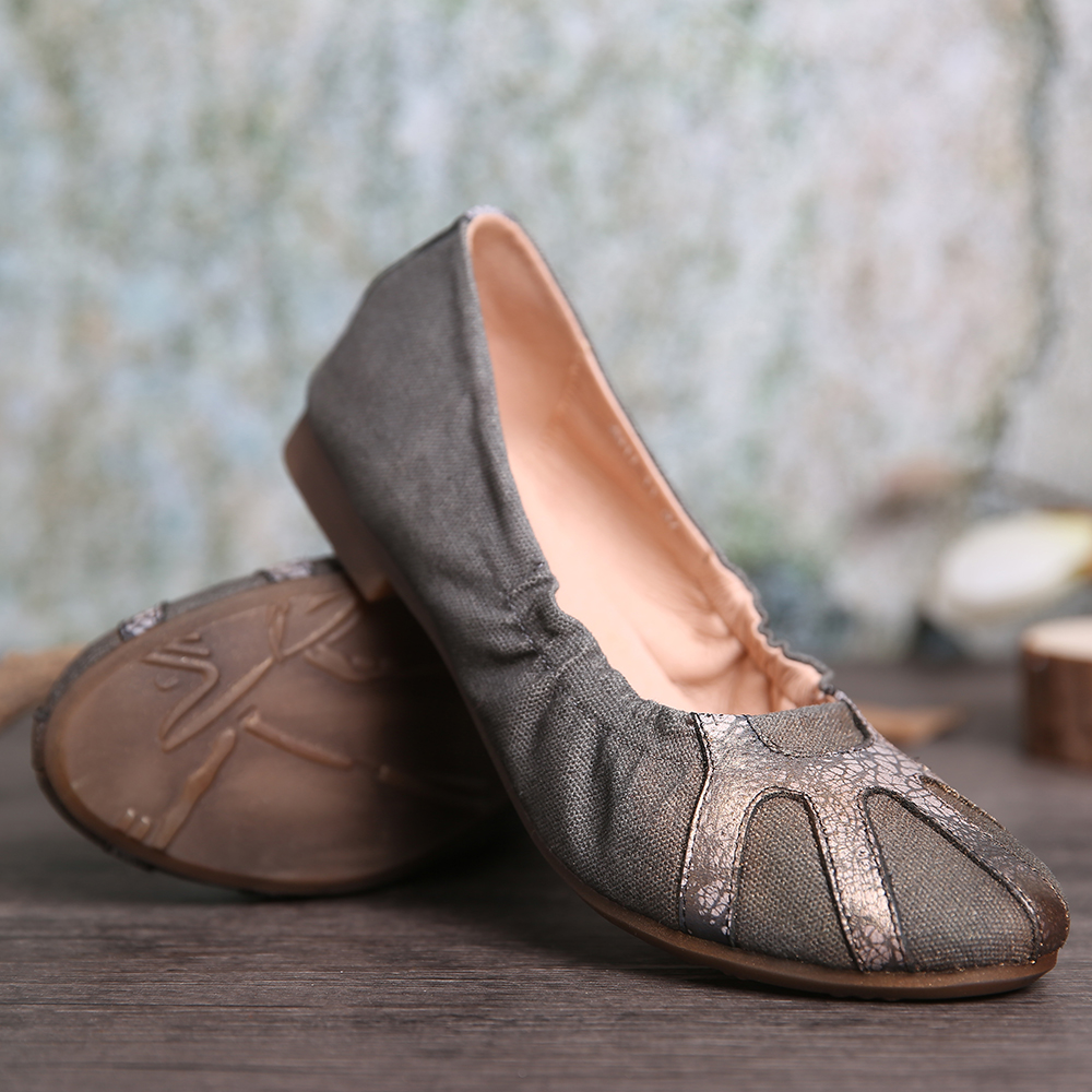 Retro Comfy Soft Canvas Splicing Foldable Slip On Ballet Flat Shoes