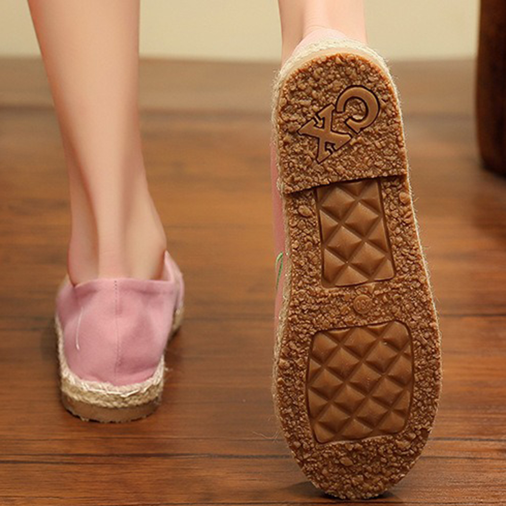 Women Handmade Embroidery Straw Comfy Lightweight Casual Flat Loafers