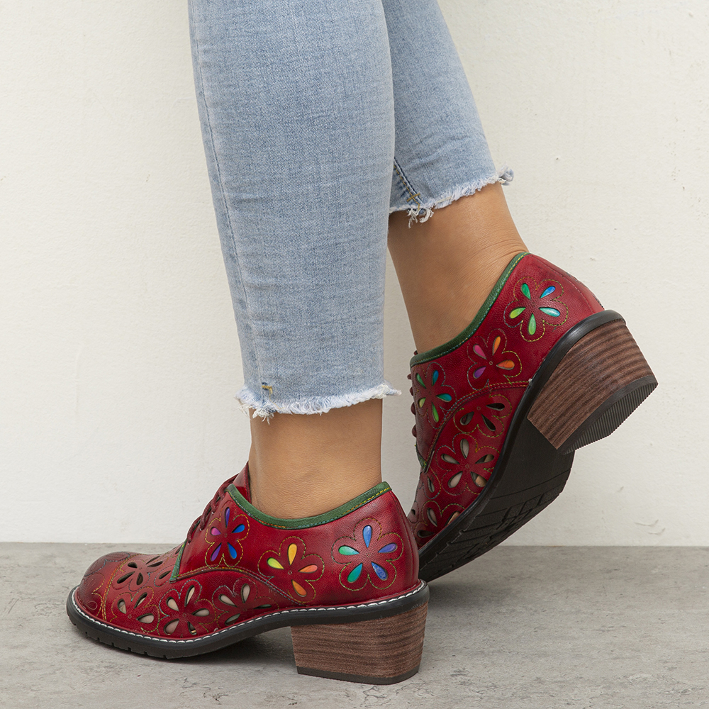 Genuine Leather Retro Comfy Breathable Hollow Lace-up Low Heel Oxfords Shoes