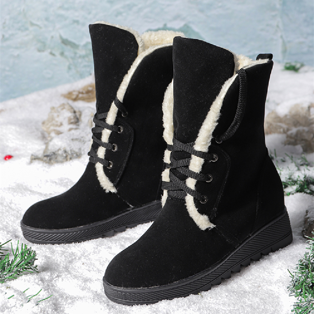 Plus Size Women Casual Warm Slip Resistant Lace Up Thick Sole Snow Boots