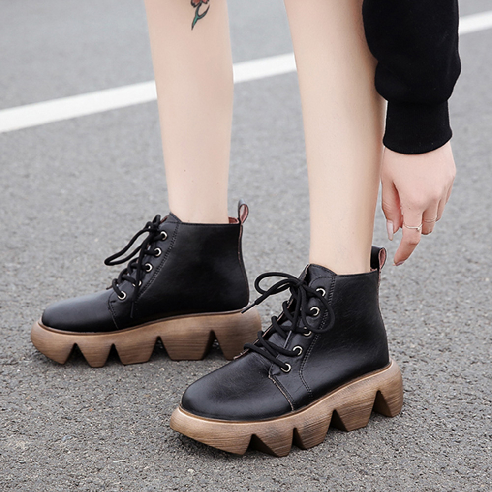 Plus Size Women Comfy Lace Up Thick Sole Short Boots