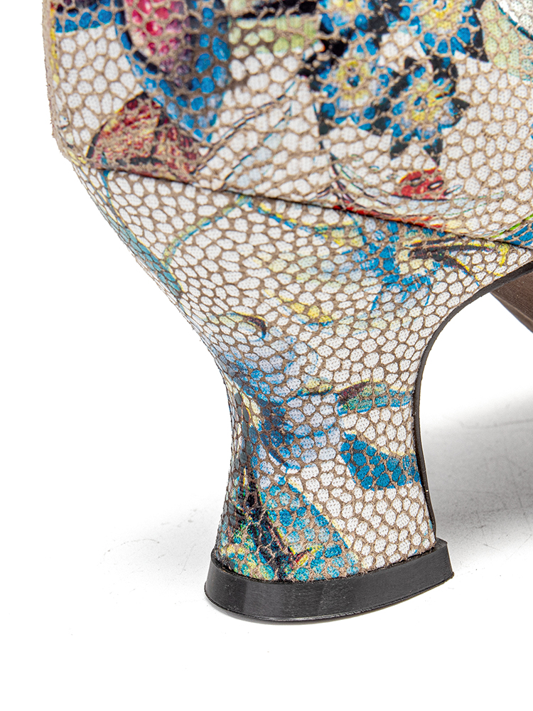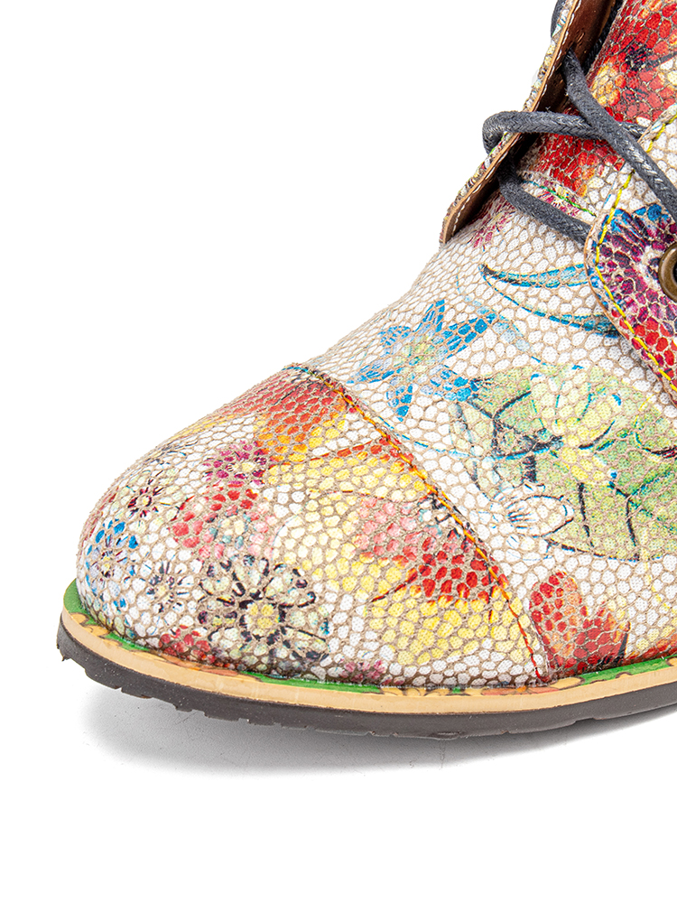 Fresh Natural Flowers Leaves Printed Comfy Wearable Chunky Heel Women Casual Lace Up Pumps