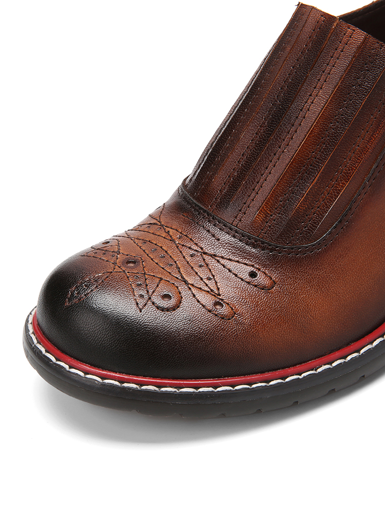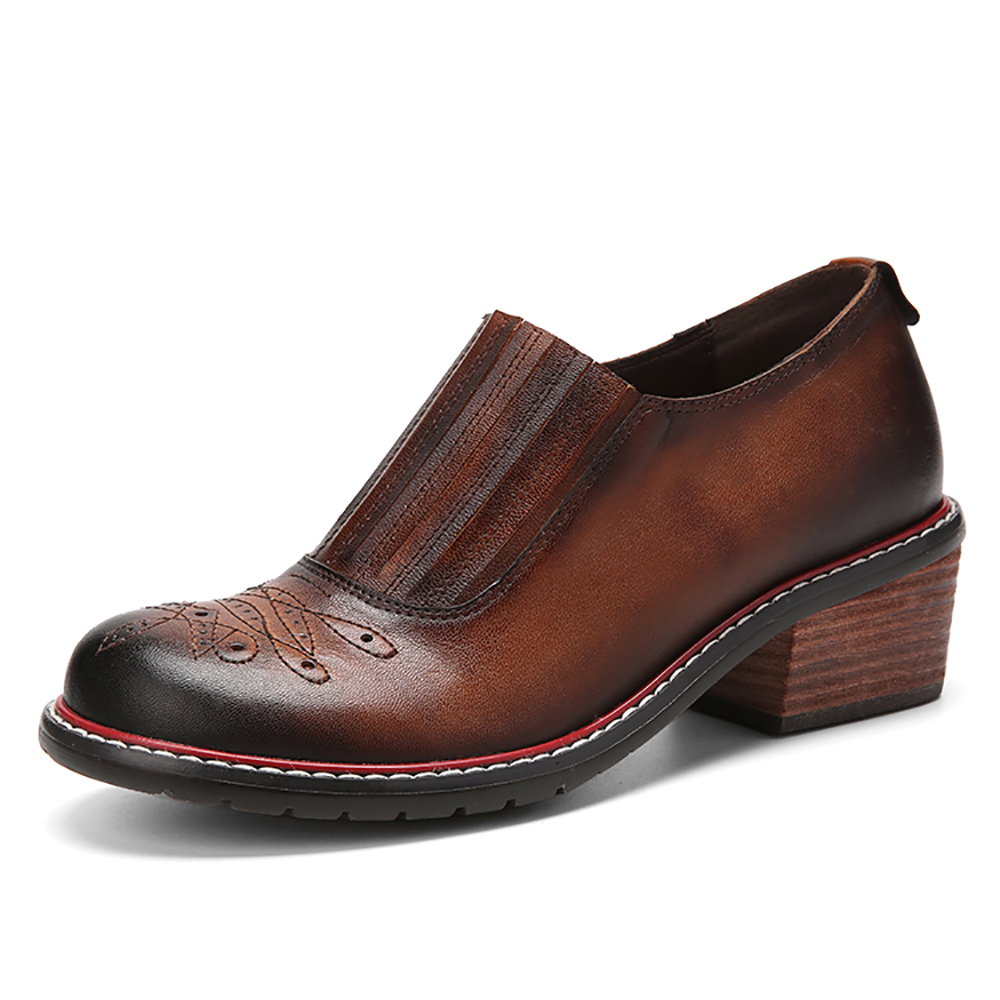 Genuine Leather Retro Comfy Elastic Slip-On Round Toe Low Heel Loafers Shoes