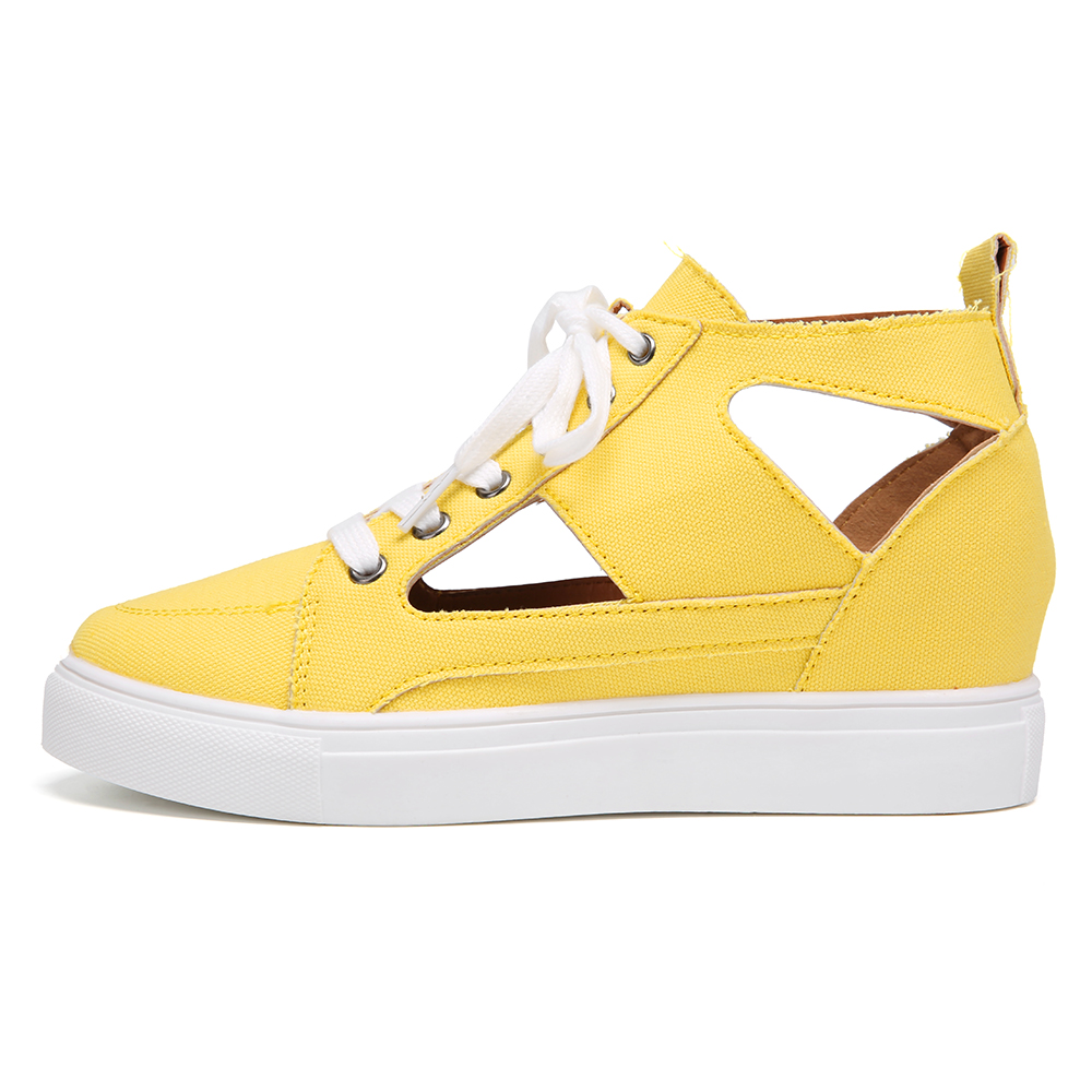 Women Canvas Cut Out Wearable Hidden Increase Casual Flat Shoes